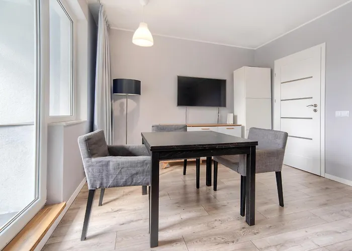 يتمّ توفير المطبخ المجهز بالكامل مع المايكرويف والغلاية الكهربائية والبرَّاد، فضلاً عن معدات صنع القهوة والشاي، مما يضمن تجربة أفضل لتناول الطعام. يقع مطار غدانسك ليخ فاونسا على بعد 25 دقائق بالسيارة، وتقع محطة حافلات Wojska Polskiego 03 مباشرة بالقرب من الشقة. يمكن للضيوف الاستفادة من وسائل الراحة مثل منطقة التشمُّس وتراس التشمُّس والحديقة لتعزيز التجربة الشاملة. أخيرًا، تجذب الشرفة بمناظر على الحديقة.
